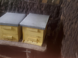 | Bienenstöcke im Bienenhaus | Bienenhaus in Hongwe / Kenia. |