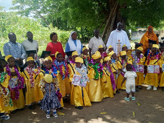 | Schüler bei der Zeugnisübergabe in Hongwe / Kenia. |